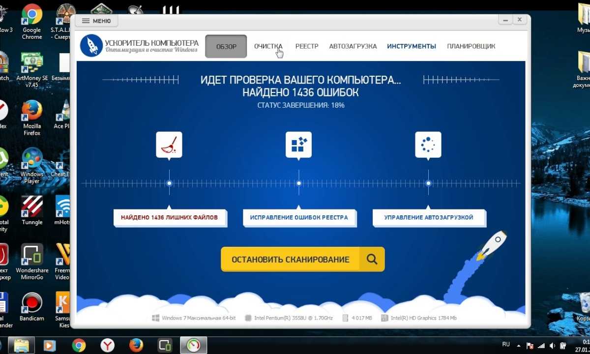 Многофункциональная программа, способная превратить ваш персональный компьютер в ракету. Не настоящую, конечно, но работать устройство будет намного быстрее. Приложение умеет не только находить лишние файлы и чистить реестр, но и оптимизирует работу отдельно взятых программ, например, браузеров или проводников. Бесплатная версия позволяет ознакомиться с функциями при одноразовом использовании каждой из них. Далее вам придётся отдать за лицензию либо 995 рублей за 1 год, либо 1995 рублей за бессрочное пользование. К тому же программа с одной лицензии ставится сразу на 3 устройства.