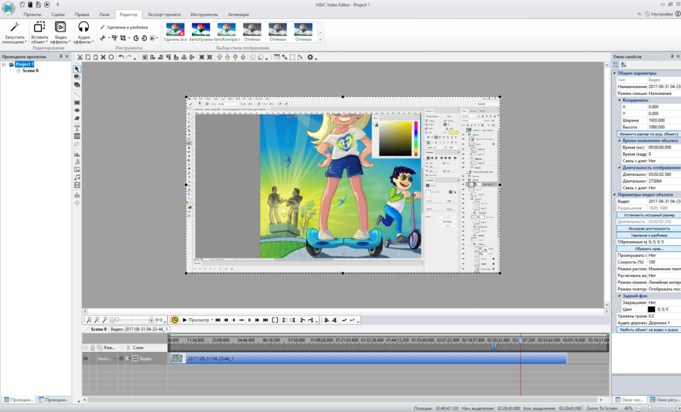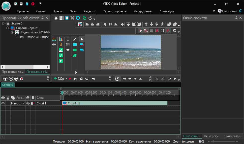 VSDC – это бесплатный нелинейный видеоредактор на русском языке для Windows. “Нелинейный” (в отличие от линейных редакторов, отличным примером которых является Movie Maker) означает, что вы сможете комбинировать видеофайлы и изображения в любой последовательности. Эта технология позволяет создавать видео на профессиональном уровне, и используется для достижения большинства популярных эффектов. Если вы никогда не слышали о нелинейном редактировании прежде, и всё ещё не понимаете, о чём речь, представьте себе возможности фотошопа, применимые не к статичному изображению, а к видео. Таким же образом, вы сможете работать со слоями, размещать несколько объектов в одном кадре, применять визуальное наложение одного объекта на другой, смешивать цвета и фрагменты, используя настройки прозрачности, и многое другое.