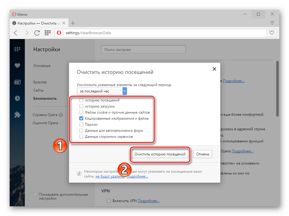Очистка кэша и истории посещений