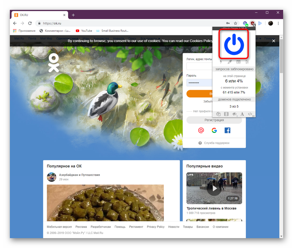 Сейчас практически у каждого пользователя в браузере установлен один из доступных блокировщиков рекламы. Он просто скрывает ненужный контент, освобождая глаза от ненужной информации и навязчивых предложений. Однако иногда подобные инструменты работают против самого юзера, блокируя основные скрипты используемых сайтов, что также может привести к поломке работы кнопки «Класс». Если у вас установлен один из таких блокировщиков, потребуется отключить его работу в Одноклассниках, после чего проверить, решилась ли проблема. Развернутые руководства на эту тему ищите в отдельных наших статьях от других авторов, перейдя по указанным ниже ссылкам.