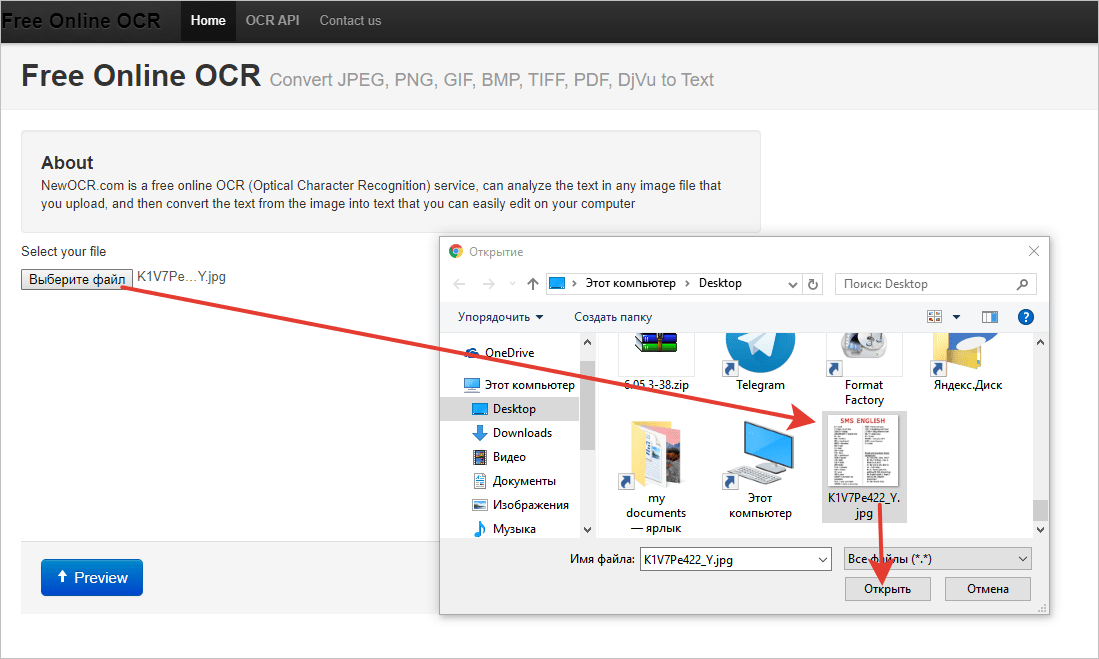 Порядок распознавания текста примерно такой же, как на Free Online OCR: