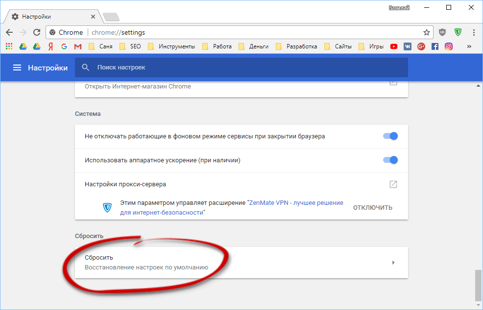 Чтобы сделать это, вам нужно перейти в его настройки. Далее найдите параметр «сброс». В некоторых веб-браузерах можно также воспользоваться поиском, чтобы немного быстрее отыскать данную настройку. Затем, сбросьте настройки и перезапустите браузер. Если даже и все это оказалось бесполезно, попробуйте удалить веб-браузер, а затем установить снова: сейчас такая манипуляция скорее всего стала бы крайне полезна.