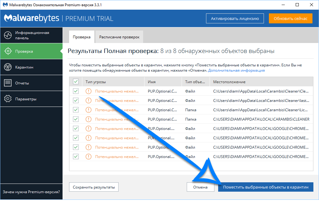 Скорее всего программа найдет как минимум одну заразу из серии pup.optional. Это потенциально ненужное ПО, которое устанавливается на компьютер вместе с разнообразными бесплатными программами. Хотя оно и не несет непосредственной угрозы компьютеру и пользовательским файлам, но данная зараза может заменить домашнюю страницу, поменять поисковую систему по-умолчанию, а так же вызвать появление огромного количества рекламы на всех посещаемых вами сайтах.