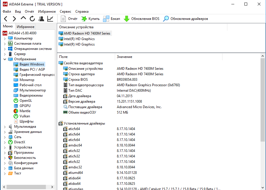 Узнать, какой видеоадаптер установлен, можно в разделе «графические устройства». Это один из нескольких разделов утилиты. Основное назначение программы — сканирование оборудования и по, установленного на компьютере и по.
