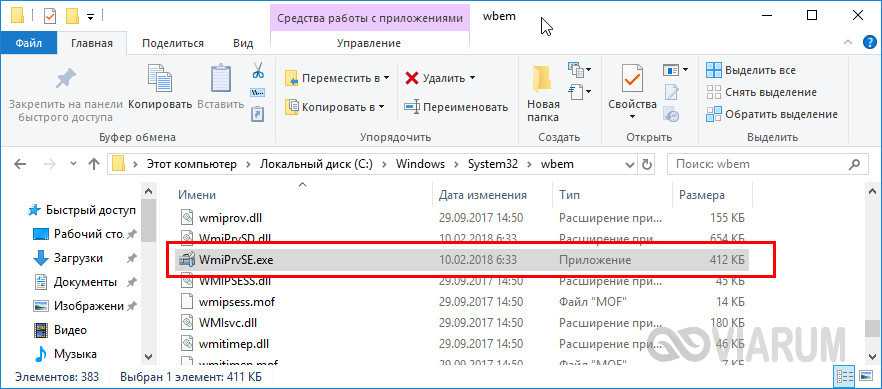 Источником процесса WMI Provider Host является исполняемый файл wmiprvse.exe, расположенный в папке C:/Windows/System32/wbem или C:/Windows/SysWOW64/wbem в 64-битных системах.