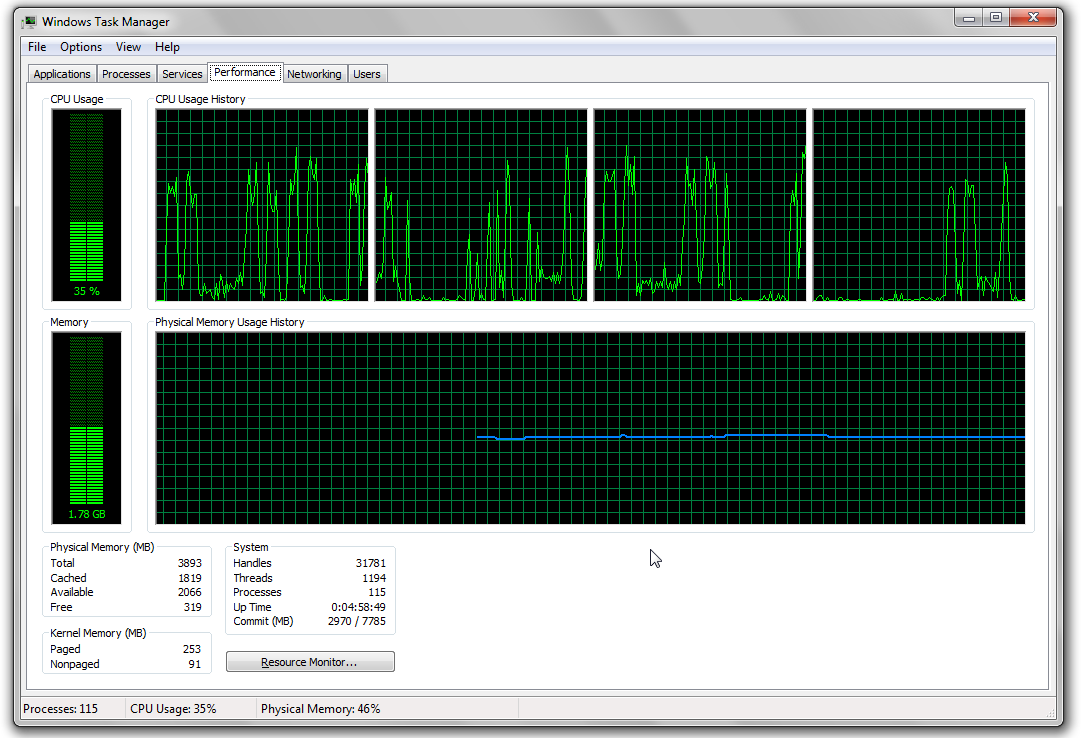 First, I isolated the process responsible for the HPWA service in the Resource Monitor. and are the two. Here is what the CPU usage looked like with both of these processed running: