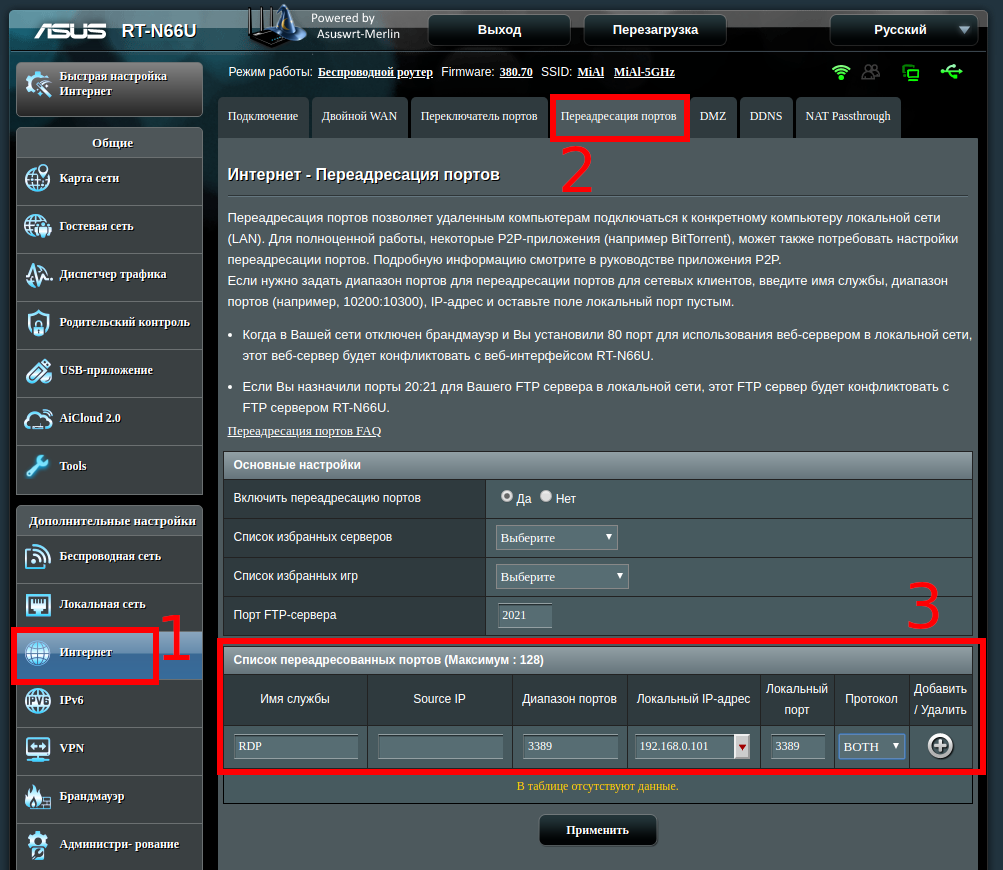 2. Последующие настройки нужно делать в роутере. Поскольку у всех разные модели роутеров, то конкретные действия и названия вкладок в панели администрирования роутеров могут различаться. Главное понять суть и найти соответствующую вкладку в роутере. Помните, что нужно перенаправить порты TCP и UDP с номером 3389.