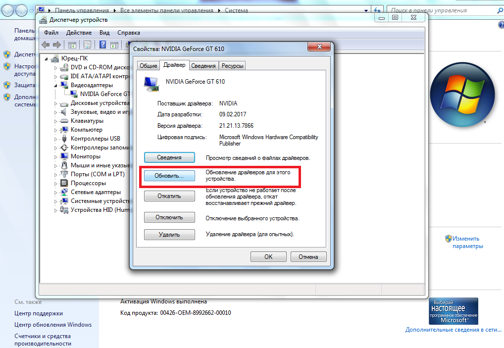 В процессе настройки и обновления драйверов графического адаптера пользователю придётся выполнить такие действия: