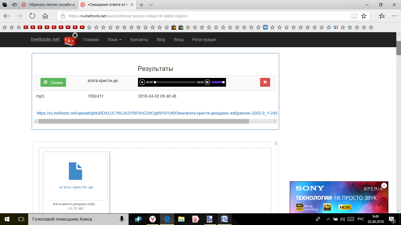 - Прослушайте результат. Если он вас устроит, скачайте файл.