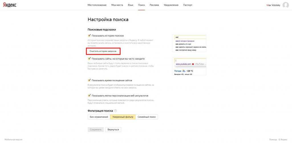 Как очистить историю поиска «Яндекса»