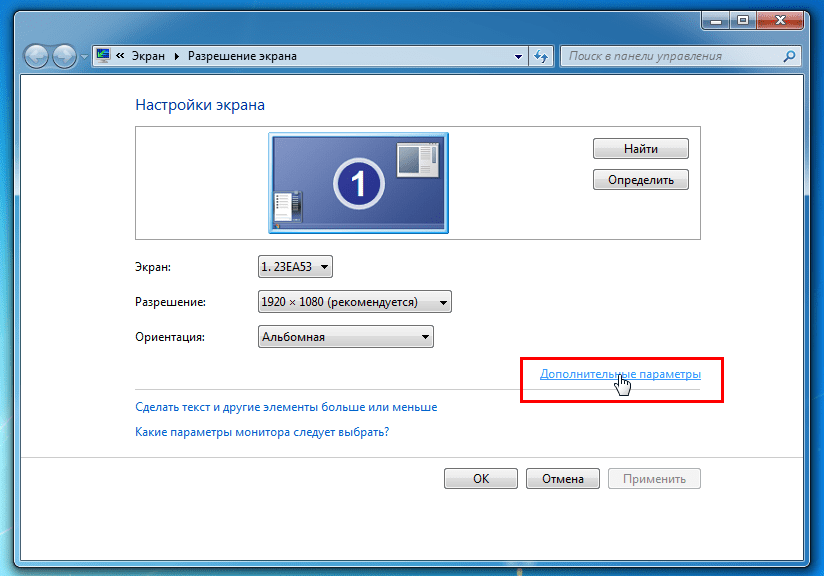 Начиная с Windows 7 такая возможность недоступна. «Повезти» может только владельцам старых видеокарт, ПО которых еще предусматривает такую возможность. Убедиться поддерживается или не поддерживается драйвером графического ускорителя эта функция можно, выполнив следующие действия. Используем приведенную на скриншоте команду, чтобы открыть параметры экрана.