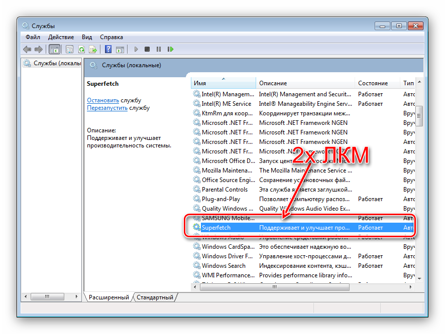 Когда же стоит отключать рассматриваемый элемент? Ответ очевиден – когда с ним наблюдаются проблемы, в первую очередь высокая нагрузка на процессор, с которой неспособны справиться более щадящие методы вроде очистки жесткого диска от «мусорных» данных. Деактивировать супервыборку можно двумя методами – через окружение «Службы» или посредством «Командной строки».