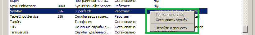 Выберите пункт меню Остановить службу (если у Вас запущен Superfetch)