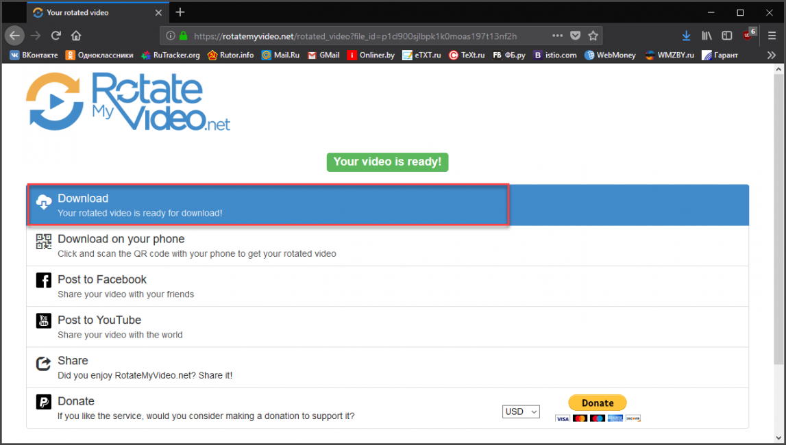 Это еще один способ, который не требует установки стороннего программного обеспечения. Таких онлайн-сервисов много. Но самым популярным является именно RotateMyVideo. Он всегда работает и не подвержен сбоям.