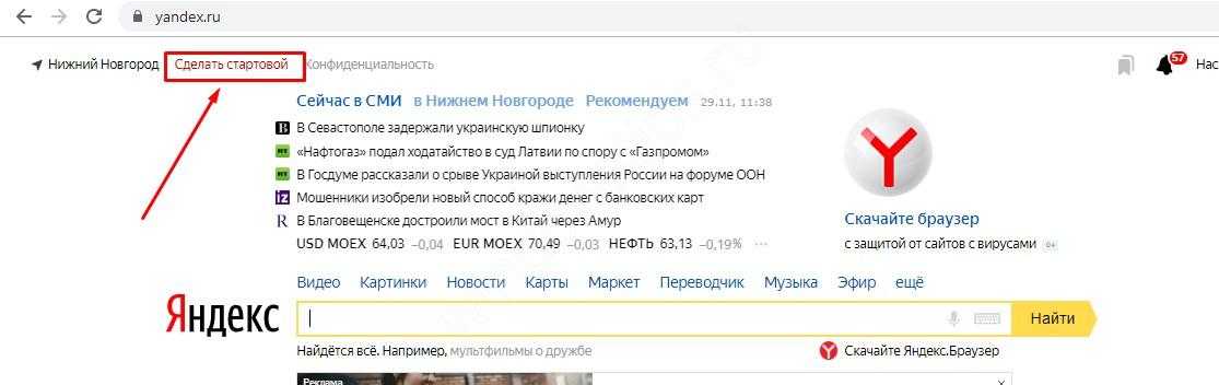 Сделать Яндекс стартовой страницей автоматически сейчас