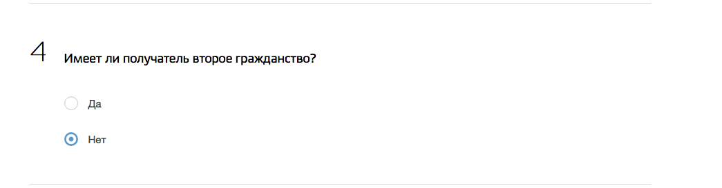 Шаг четвертый. Система спросит о наличии второго гражданства.
