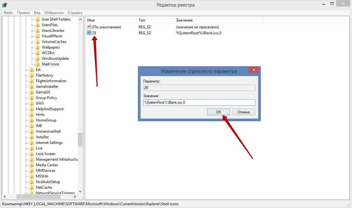 Убираем стрелки с ярлыков в Windows 8 с помощью реестра