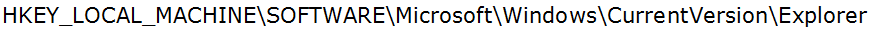 - Переходим по пути: HKEY_LOCAL_MACHINE\ SOFTWARE\ Microsoft\ Windows\ CurrentVersion\ Explorer.