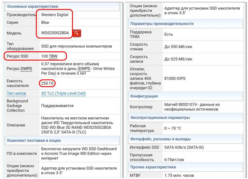 Вот, к примеру, на упомянутом сайте Nix.Ru для одной из моделей SSD Western Digital на 250 Гб указан ресурс 100 TBW.