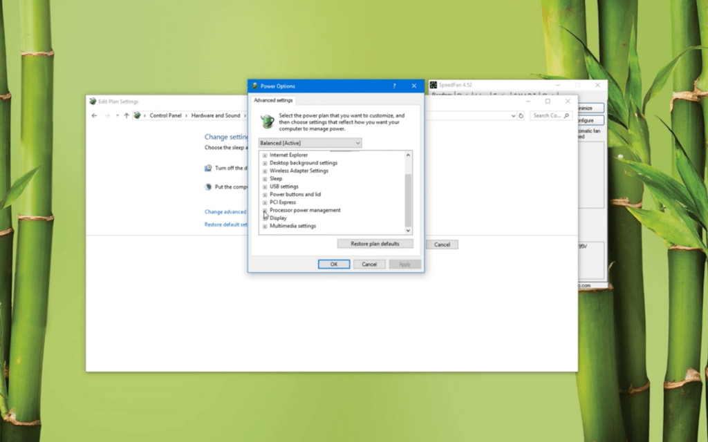 Нажмите на значок + напротив Processor power management в окне Power Options: