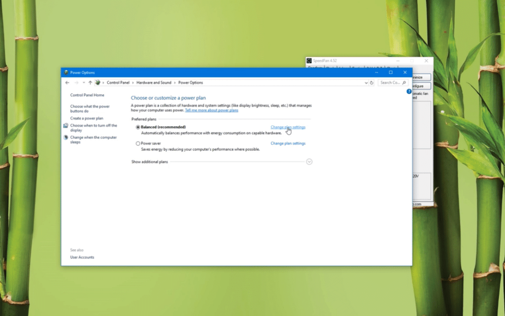 Нажмите Сбалансированный перед тем, как нажмёте Change plan settings: