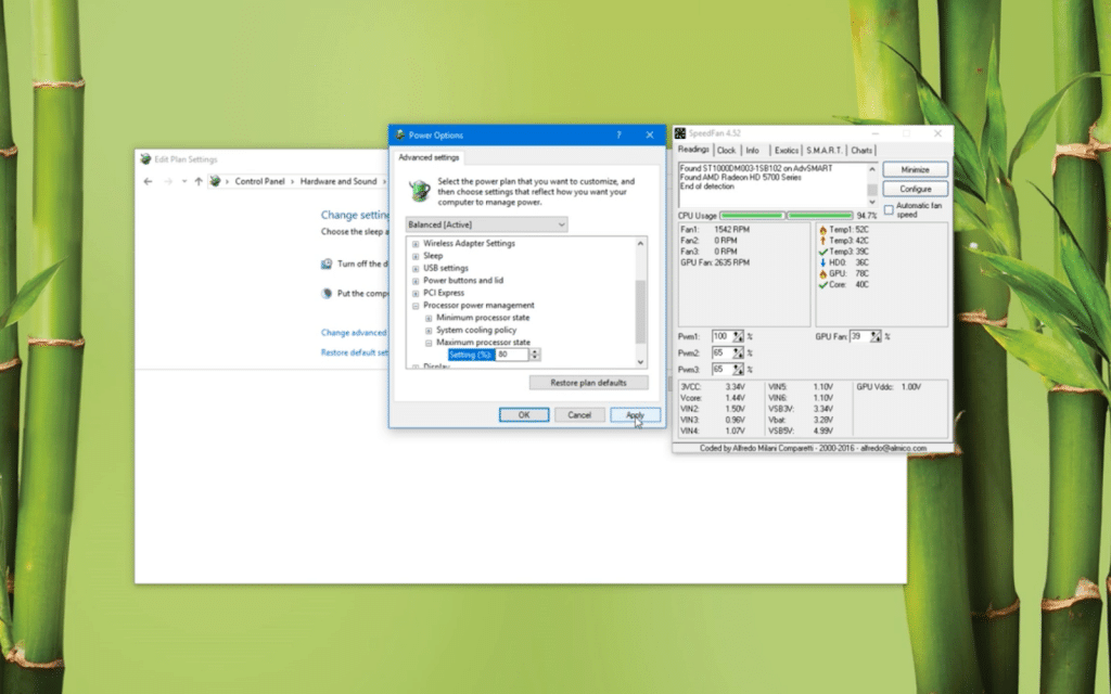 Нажмите Применить. Температура процессора уменьшиться в течение 10-30 секунд.