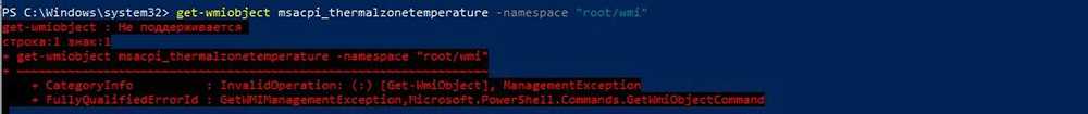 - Здесь следует использовать другую команду, а именно: get-wmiobject msacpi_thermalzonetemperature -namespace «root/wmi».