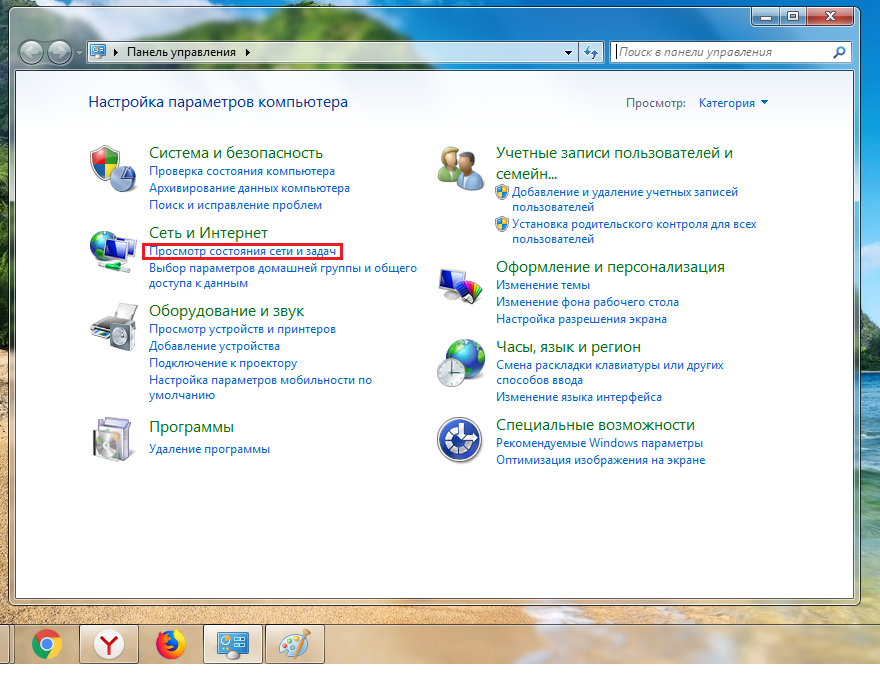 2. В категории Сеть и Интернет, выберите Просмотр состояния сети и задач.