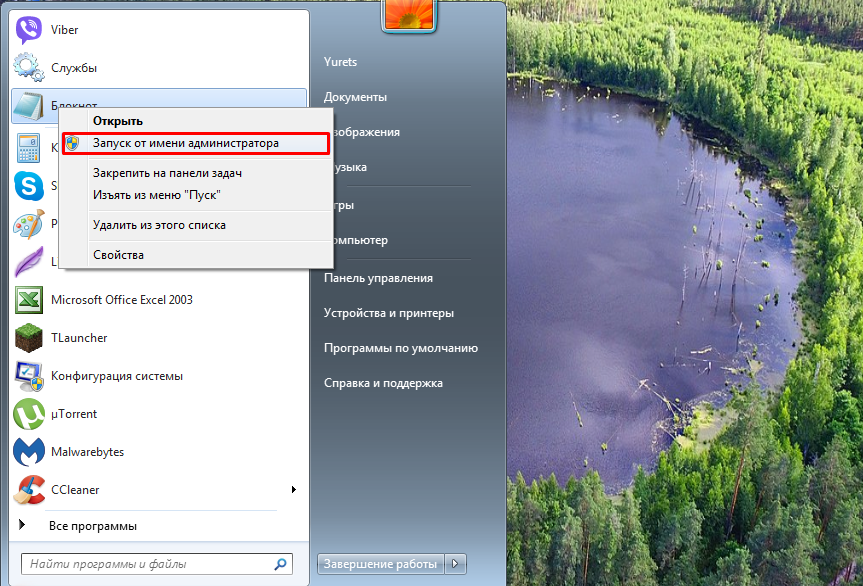 - Найти программу Блокнот (быстрее всего сделать это через меню «Пуск»).