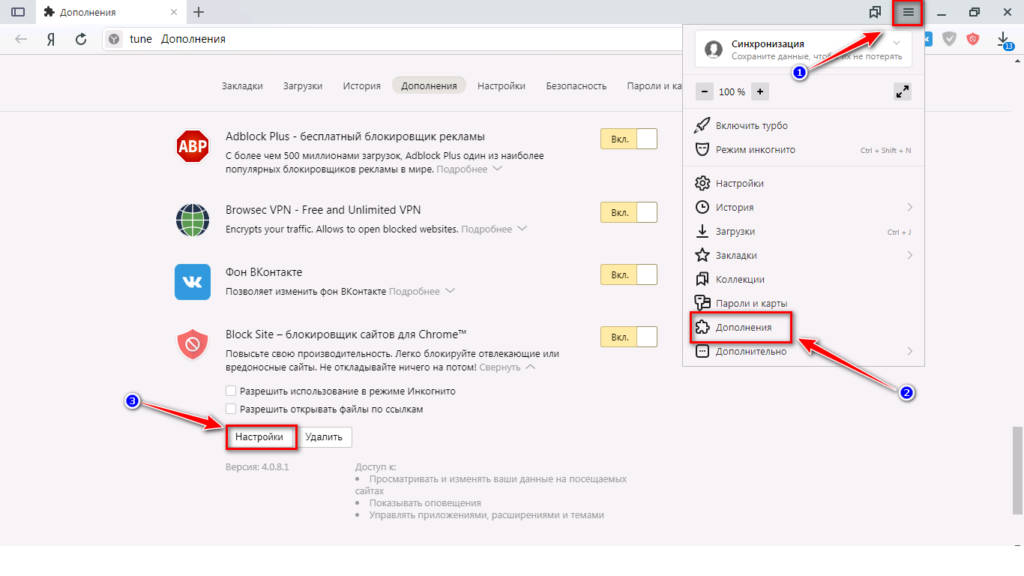 3. Чтобы закрыть доступ к определенному сайт, зайдите в меню и откройте настройки.