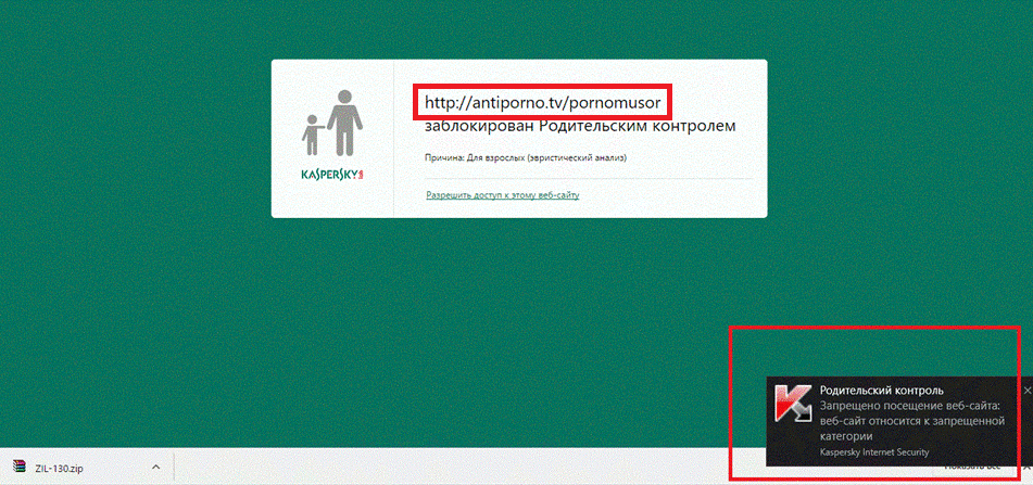 Для настройки запрета достаточно выбрать функцию родительского контроля и выполнить настройку, после чего при попытке зайти на запрещённый ресурс на экране будет появляться сообщение о его блокировке.