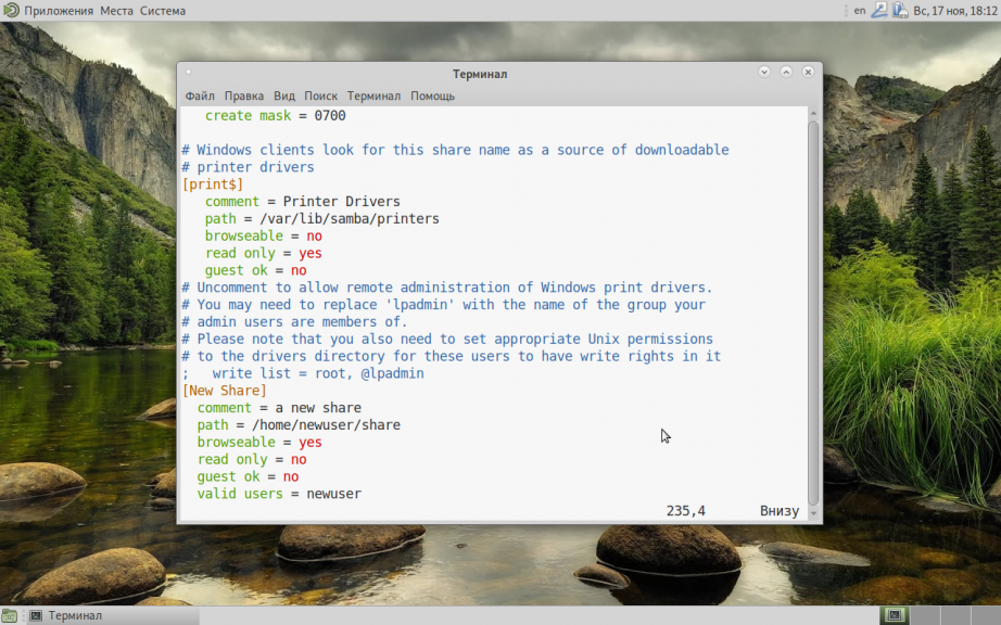 Когда завершите создание конфигурационного файла, переходим к вопросу как расшарить папку Ubuntu для Windows.