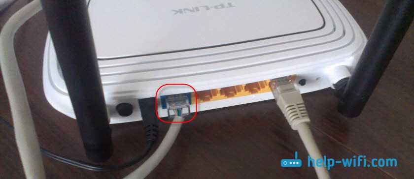 На тыльной стороне вашего TP-Link TL-WR841N имеется несколько разъемов, один из которых отмечен WAN (Internet) и отличается от остальных (остальные — LAN). Произведите подключение следующим образом: