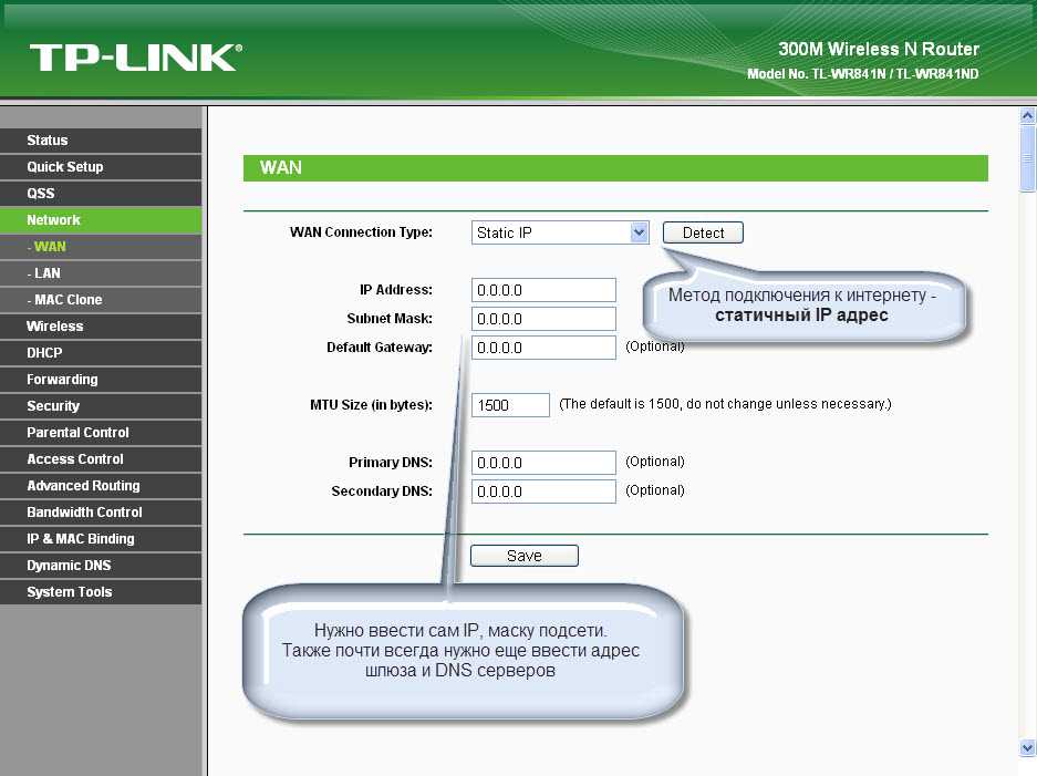 - если ваш провайдер предоставляет отдельные настройки IP-адреса, макси подсети, а также шлюза вам необходимо ввести эти значения в соответствующие поля.