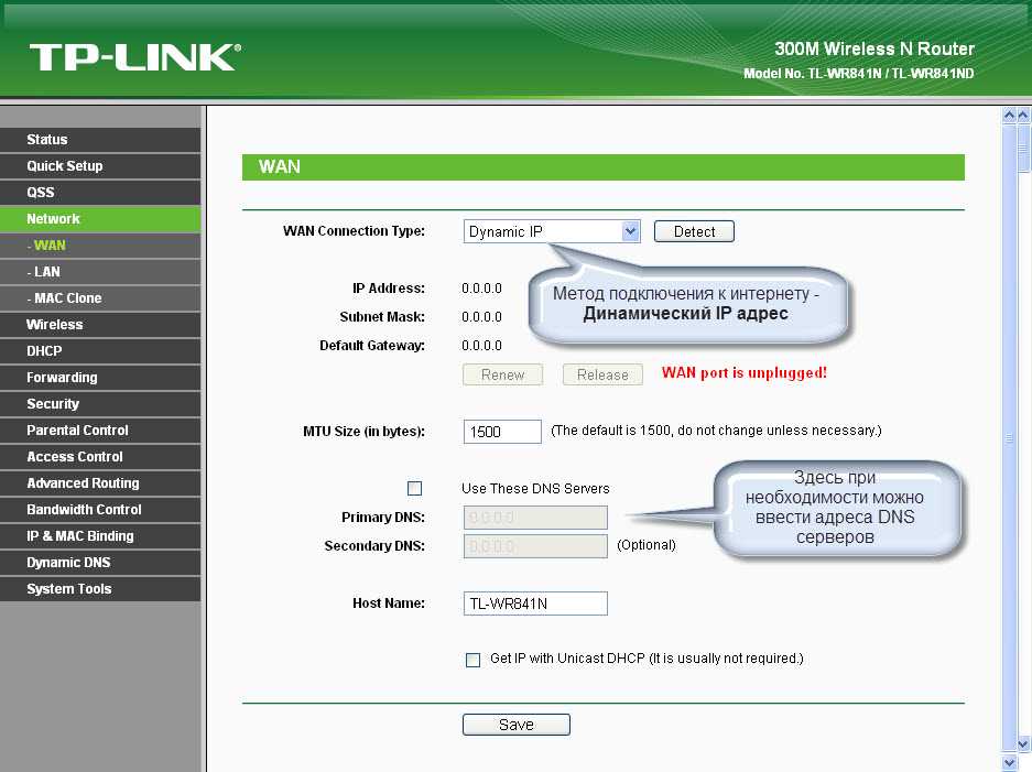 - выбрать» Динамический IP-Адрес» и нажать «Сохранить»;