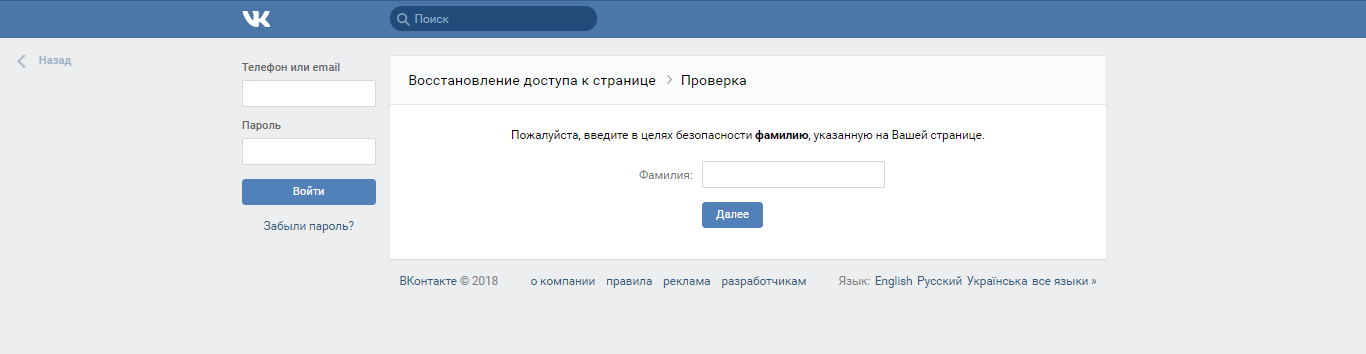 - На следующей открывшейся странице укажите фамилию, которую вы используете в вашем аккаунте на сайте;