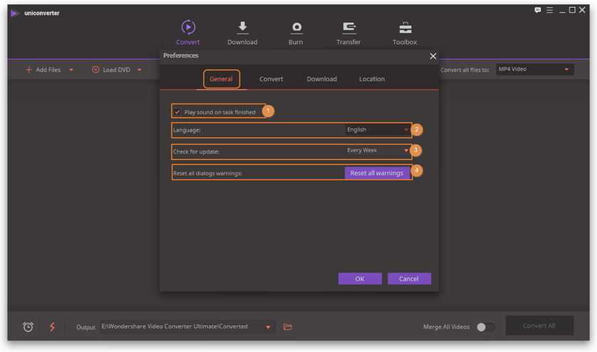 2. Установите Язык в Wondershare UniConverter из 7 доступных языков.