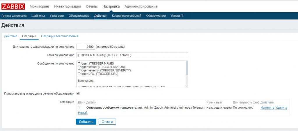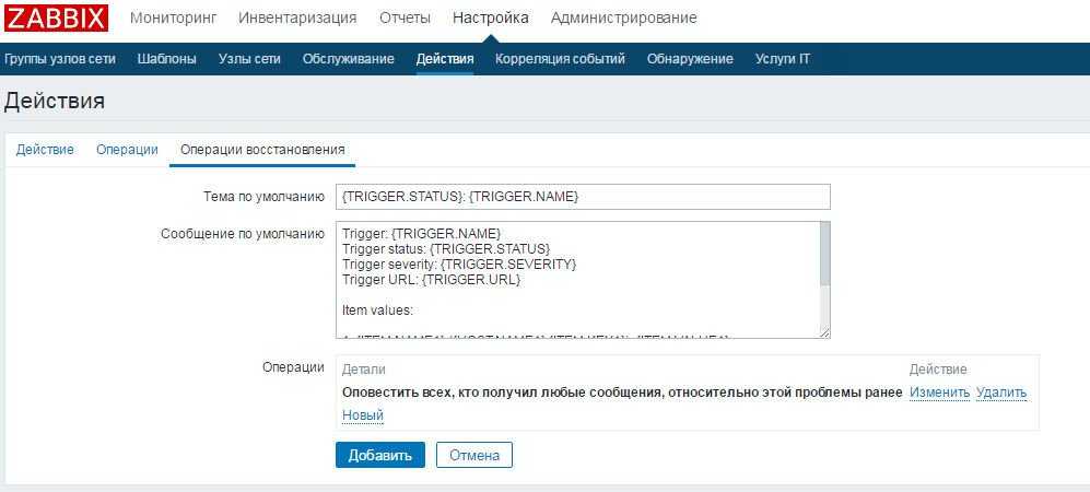 На вкдадке Операции восстановления Выбираем в операциях «оповещение о восстановлении», чтобы знать, что проблема ушла.
