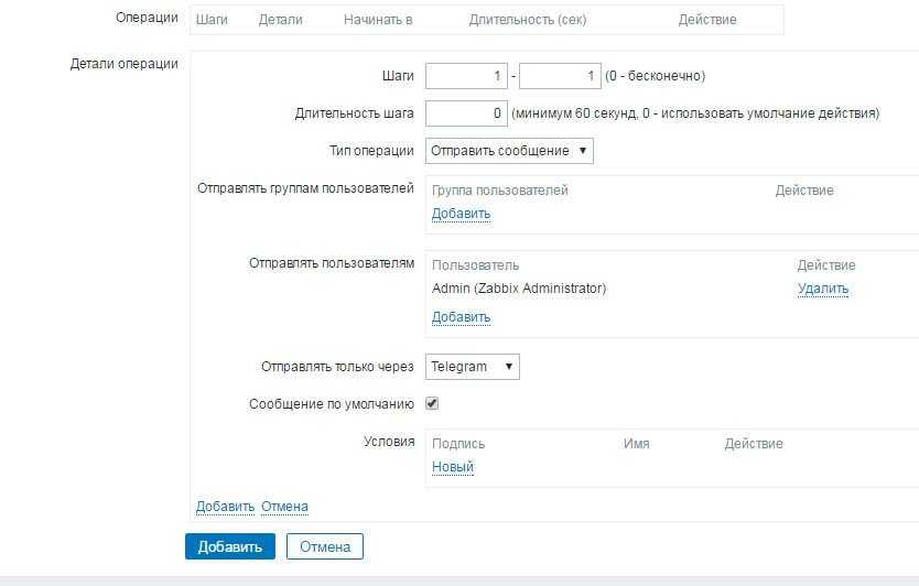 В операциях нажимаем Новый и добавляем наш способ оповещения: