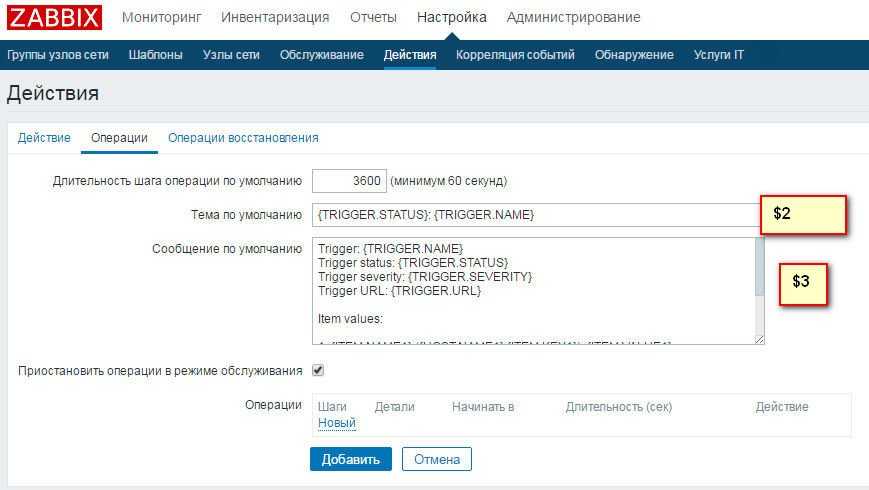 Где $1, $2, $3 переданные Zabbix’ом параметры: получатель, тема сообщения, сообщение.