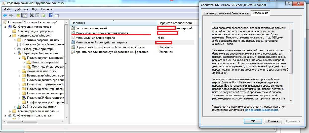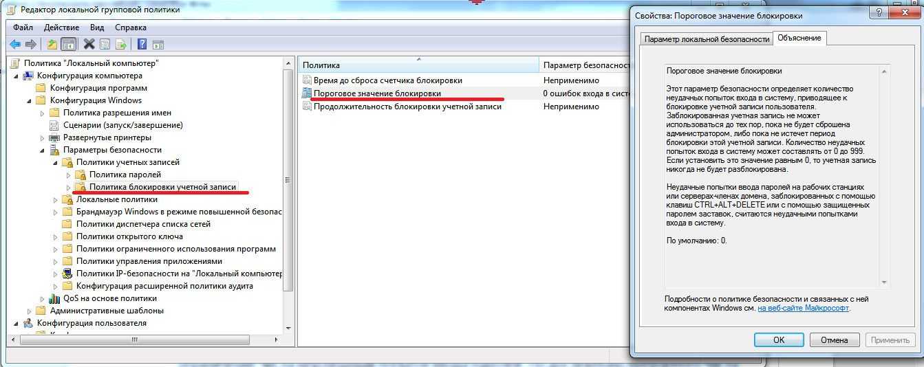 Ограничение числа ошибочных попыток ввода паролей. По достижению выбранного числа учётная запись блокируется. Это полезно для защиты от брутфорса. На скриншоте ниже такая политика не настроена, но вы видите, где это можно сделать: