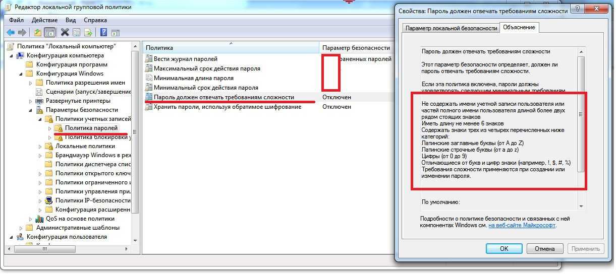 Требования сложности пароля. Настройка реализуется по-разному, в ОС Windows всё достаточно понятно.