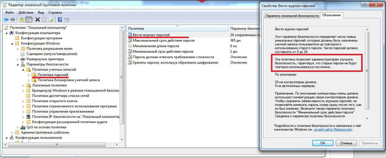 Запрет использования ранее заданных паролей. Эта функция доступна в некоторых ОС, в частности в Windows. Для этого надо активировать соответствующую настройку: