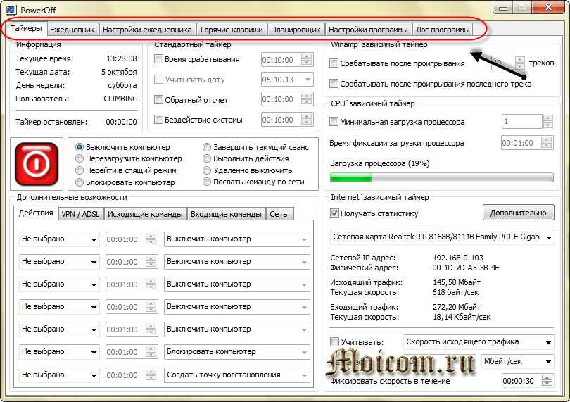В общем в этом многофункциональном таймере для выключения вашего компьютера, много всего полезного и интересного, походите по вкладкам и выберете то, что вам нужно.