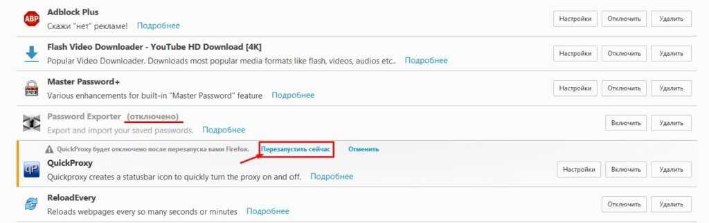 - Установлено большое количество расширений. Это дополнительные мини-программы внутри обозревателя, которые расширяют его функционал. В отличие от плагинов расширения можно удалить. Если пользователь установил и включил одновременно много дополнений для разных целей (блокировка рекламы, VPN-сервис, загрузка видео и аудио из веб-ресурсов и т. д.), то Mozilla Firefox может не выдержать такой нагрузки: его работа будет замедляться, так как дополнительные процессы будут отнимать слишком много оперативной памяти. Выход — удалить или отключить ненужные расширения.
