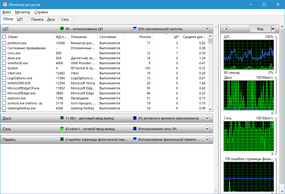 В нормально работающей системе System Idle Process совсем не снижает быстродействие. Если же при больших показателях бездействия процессора в 60-70% компьютер заметно тормозит, надо искать причину. Проверьте в «Диспетчере задач», что вызывает повышенную нагрузку на ЦП. Также можно использовать «Мониторинг ресурсов»: зажмите Win+R и впишите resmon. Сервис покажет более подробную информацию по использованию ресурсов ЦП.