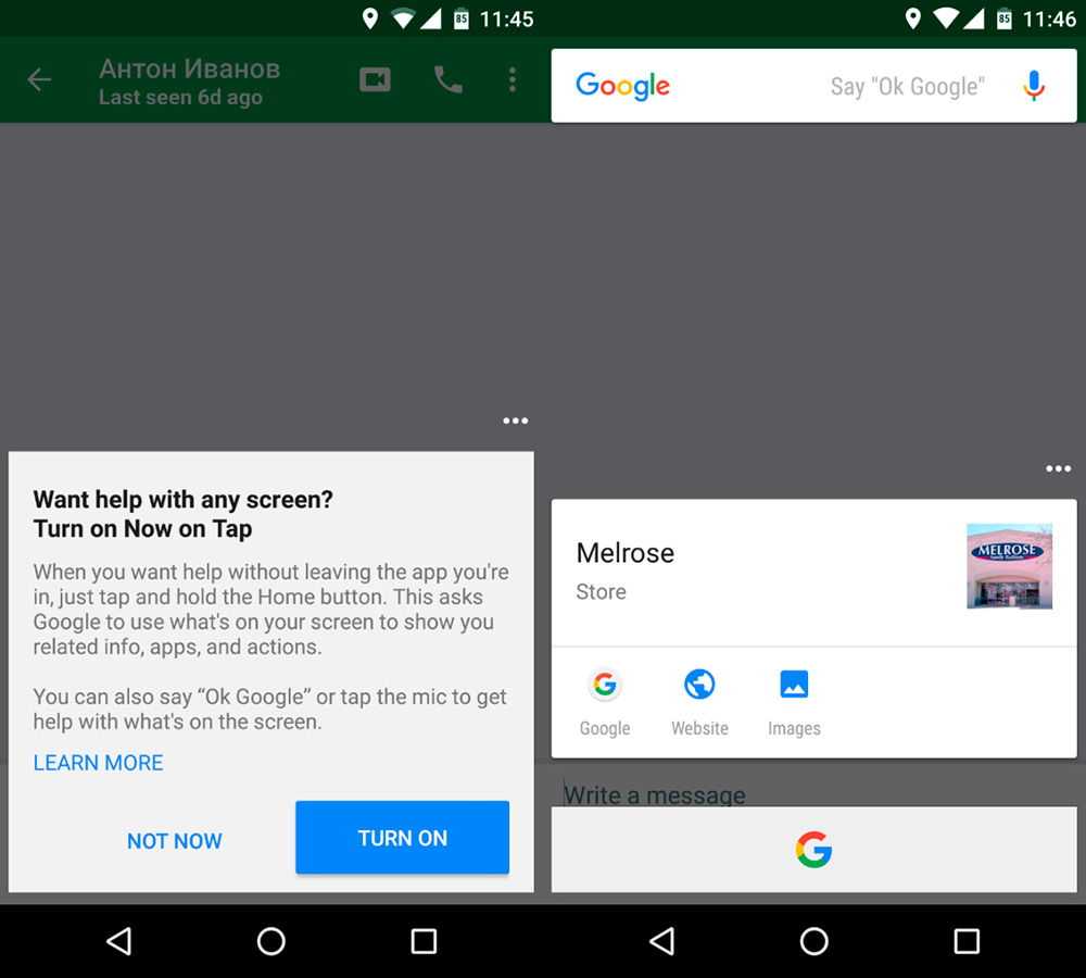Google Now on Tap работает очень просто. Достаточно несколько секунд удерживать кнопку Home, чтобы активировать помощника. После этого можно узнать любую информацию, будь то текст любимой песни, рейтинг кинотеатра, месторасположение магазина. Следует понимать, что помощник анализирует данные, которые сейчас отображаются на дисплее.