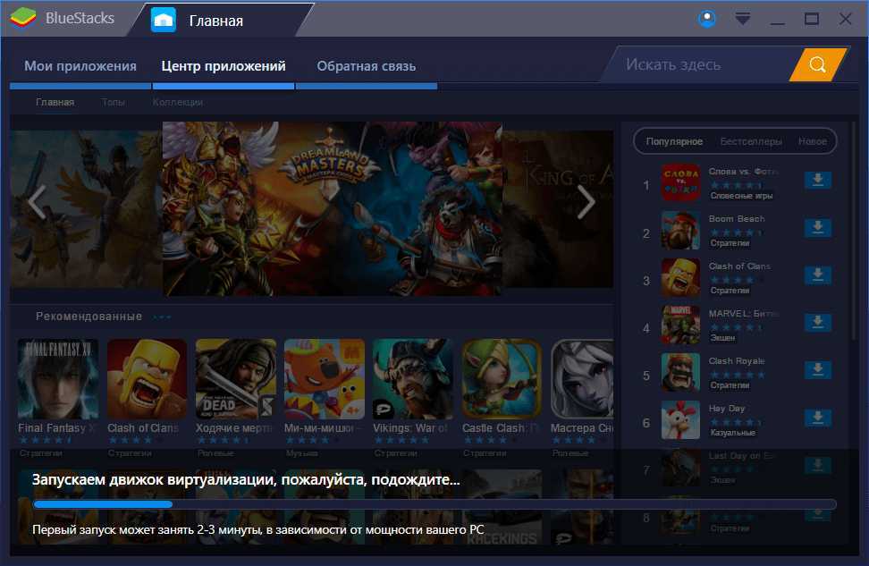 Андроид эмулятор BlueStacks 3 установлен и готов к работе. Это, по сути, Play Market для вашего компьютера или ноутбука. Теперь можно установить и использовать любую игру из мира Android.