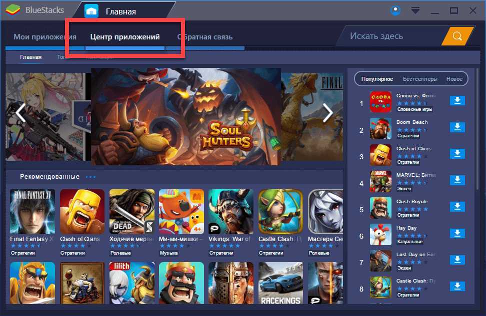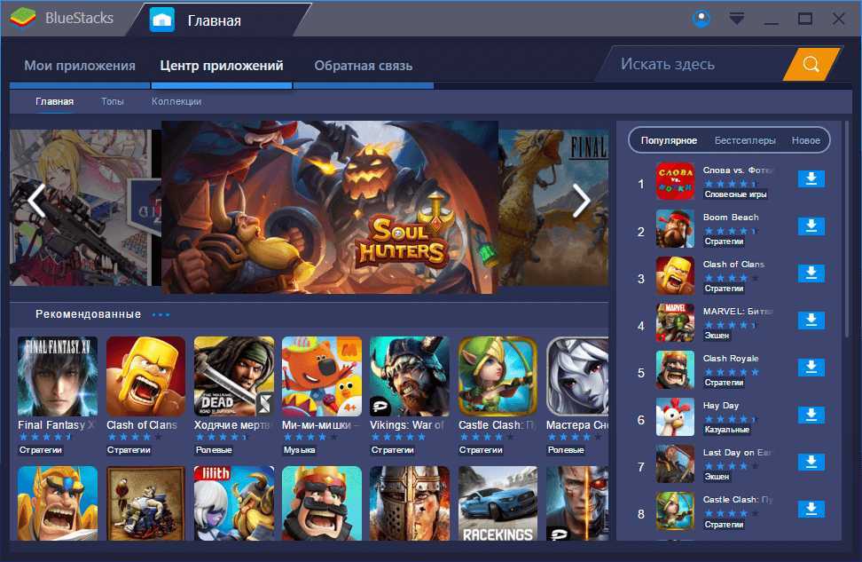 Устанавливать приложения можно как из Google Play, так и с помощью файлов типа APK. Кроме того, в каталоге разработчиков эмулятора имеются самые популярные игры, которые можно установить без каких-либо проблем.