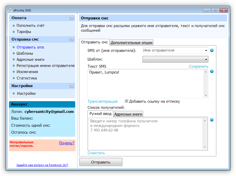 Если необходимо отправить более 1-го сообщения, такой сервис может не подойти. Это связано с тем, что здесь установлена специальная защита, которая не позволяет отправлять много SMS с одного IP-адреса.